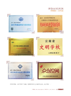 树职教典范 立百年名校 所有的荣誉,从来不是为了炫耀,而是我们倾尽全力最好的证明。未完待续…… 学校网站:http://www.ynjgy.com 招生呼叫中心:0871-68314770 62 厚德尚行